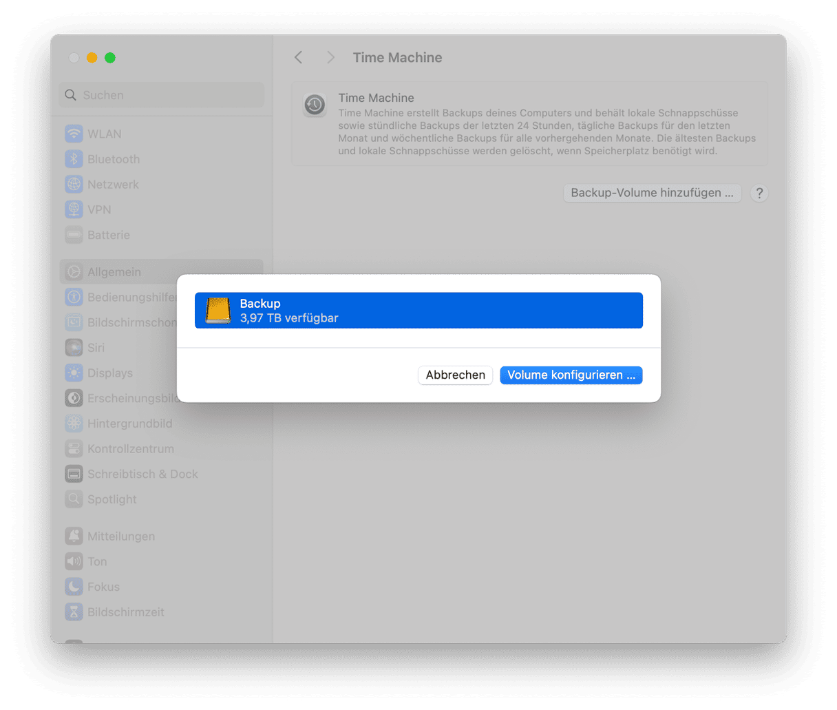 - Öffnen Sie die Systemeinstellungen > Allgemein > Time Machine.