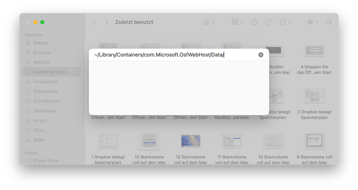 - Fügen Sie die folgenden Pfade nacheinander in das Textfeld unter „Gehe zu Ordner“ ein und verschieben Sie den Inhalt des Ordners am jeweiligen Speicherort in den Papierkorb.