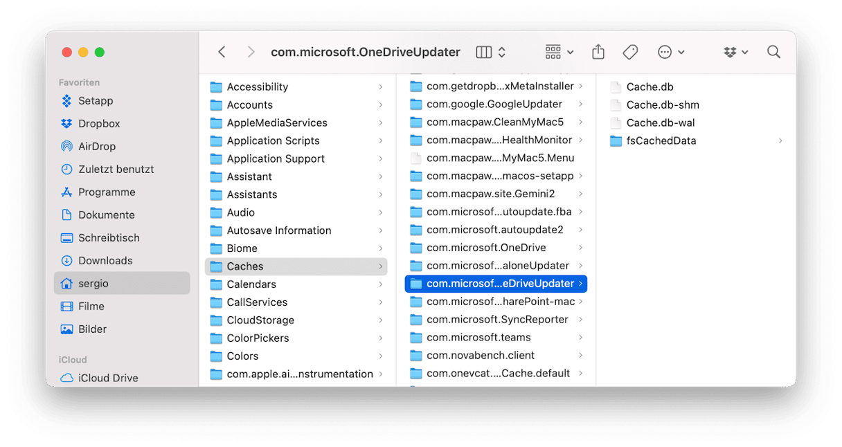 ~/Library/Caches - Suchen Sie nach Ordnern, die mit „com.microsoft“ beginnen.