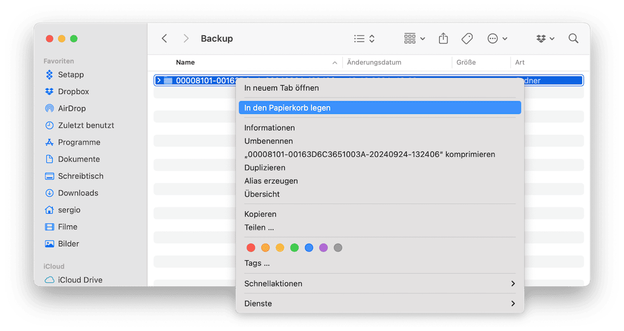 Eine alternative Möglichkeit besteht darin, auf den Ordner mit allen Sicherungskopien zuzugreifen und dort auszuwählen, was gelöscht werden soll. Gehen Sie dazu wie folgt vor: