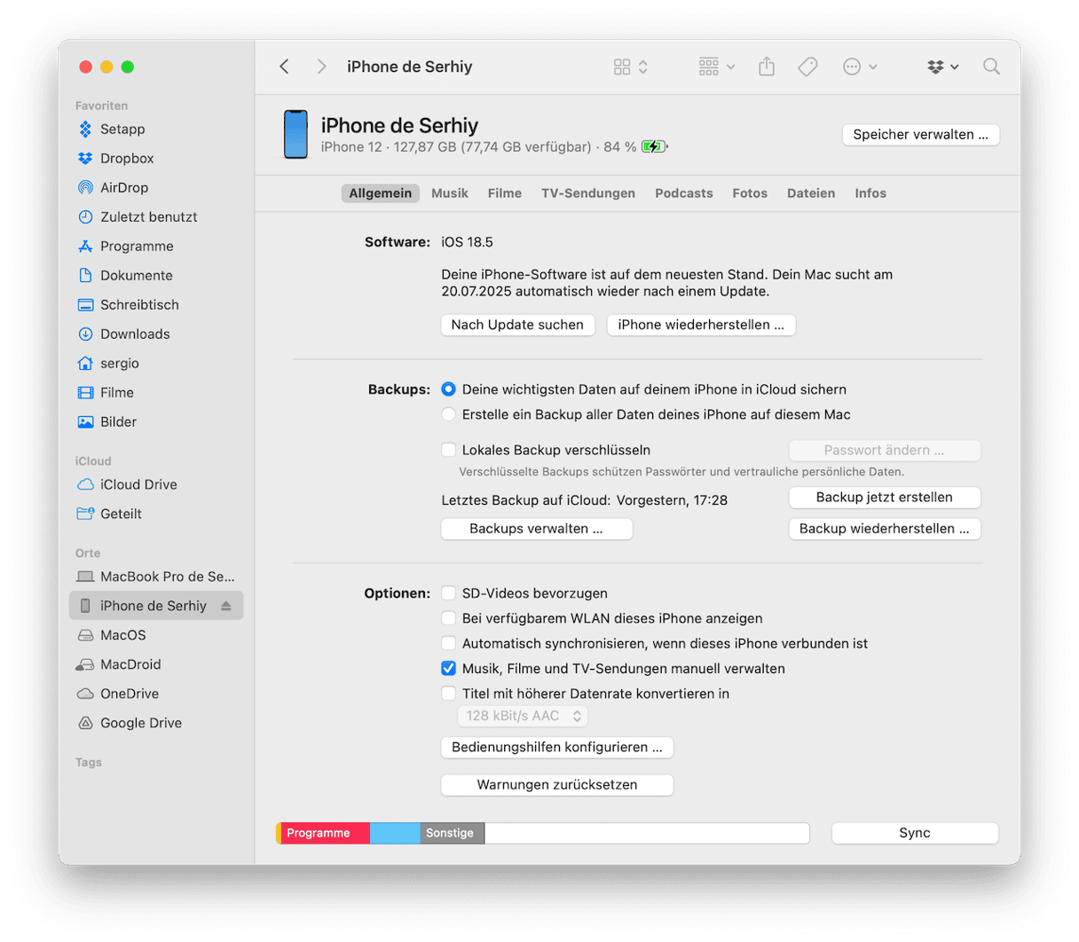 Der Finder bietet eine weitere Möglichkeit, um nicht benötigte iOS-Dateien zu löschen: