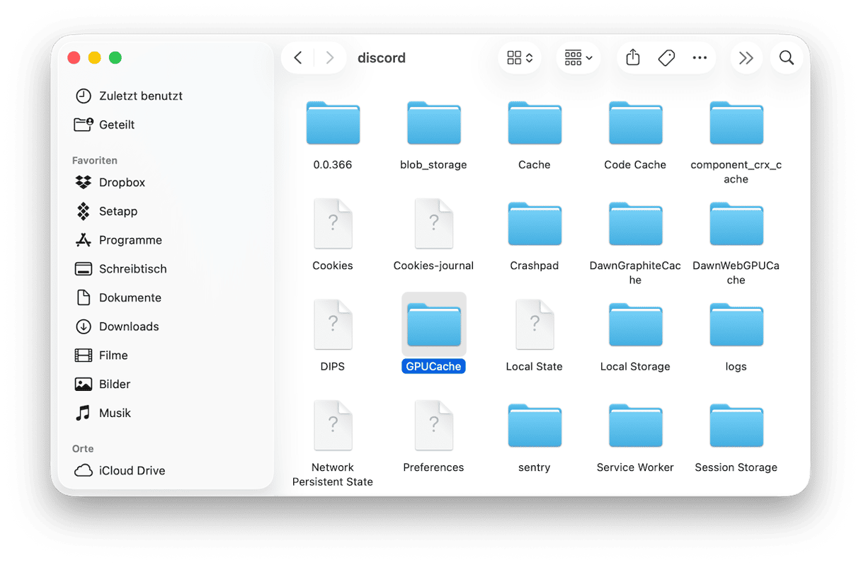 - Ziehen Sie die Ordner „Cache“, „GPUCache“ und „Code Cache“ in den Papierkorb. Starten Sie Discord neu und versuchen Sie die Aktualisierung erneut.