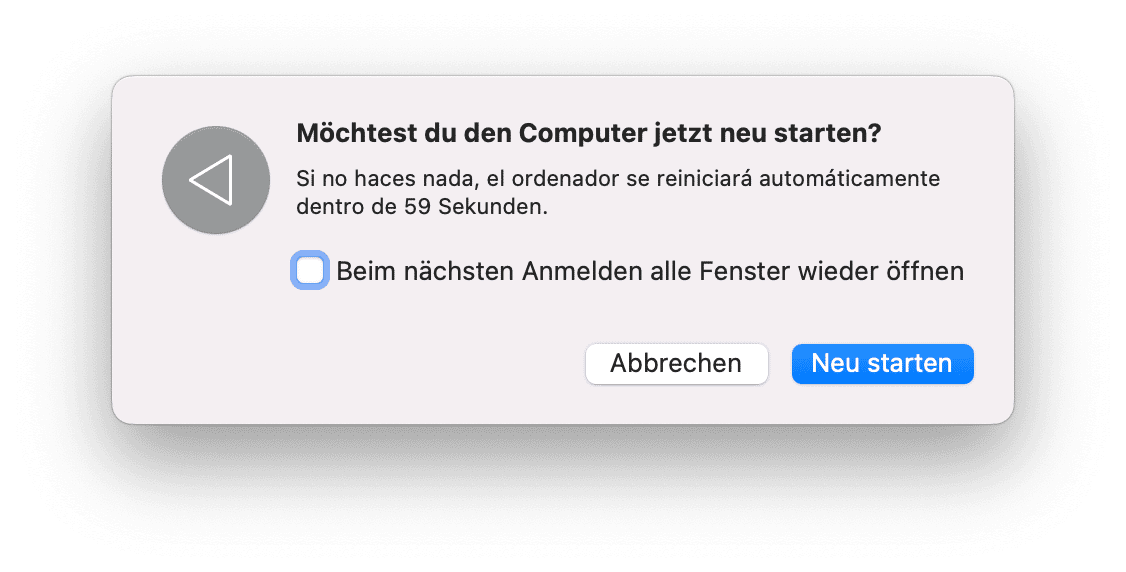 - Eine oder mehrere der Dateien im Papierkorb werden noch vom System verwendet und können daher nicht gelöscht werden. Starten Sie Ihren Mac neu und versuchen Sie es anschließend erneut.
