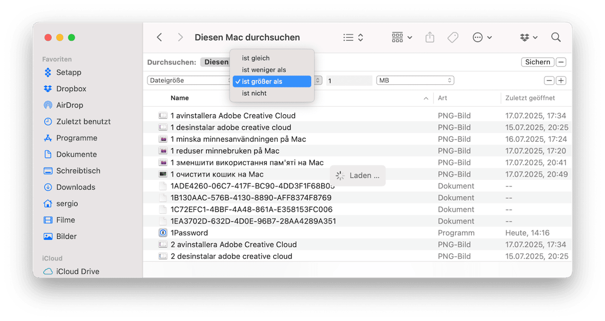 Eine andere Möglichkeit, um nach großen Dateien zu suchen, ist die Verwendung der Suchfilter im Finder. So können Sie die größten Dateien auf Ihrem Mac finden. Und so geht's: