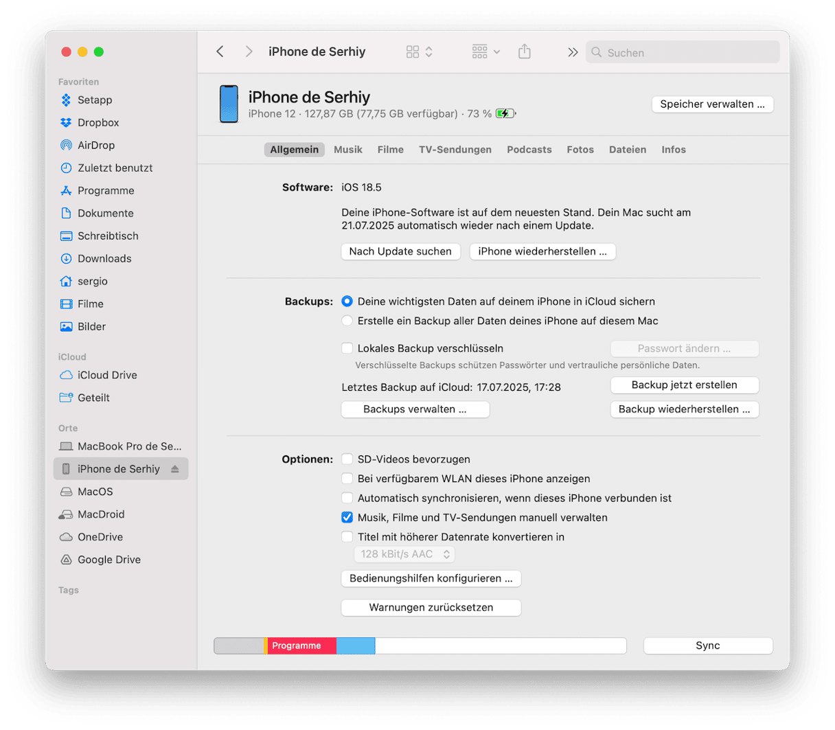 Veraltete iPhone-Backups können enorm viel Speicherplatz einnehmen. Wenn Sie jemals ein Backup Ihres iPhones mit Ihrem Computer erstellt haben, dann bewahrt Ihr Mac wahrscheinlich alle Daten Ihres Telefons auf. Deshalb sollten Sie die Festplatte auf veraltete Backups überprüfen, bevor sie überhandnehmen und Ihnen der Platz ausgeht.