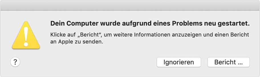 Nach dem Neustart zeigt Ihr Mac eine Meldung an, warum der Absturz aufgetreten ist. Klicken Sie darauf, um die Details zu sehen.
