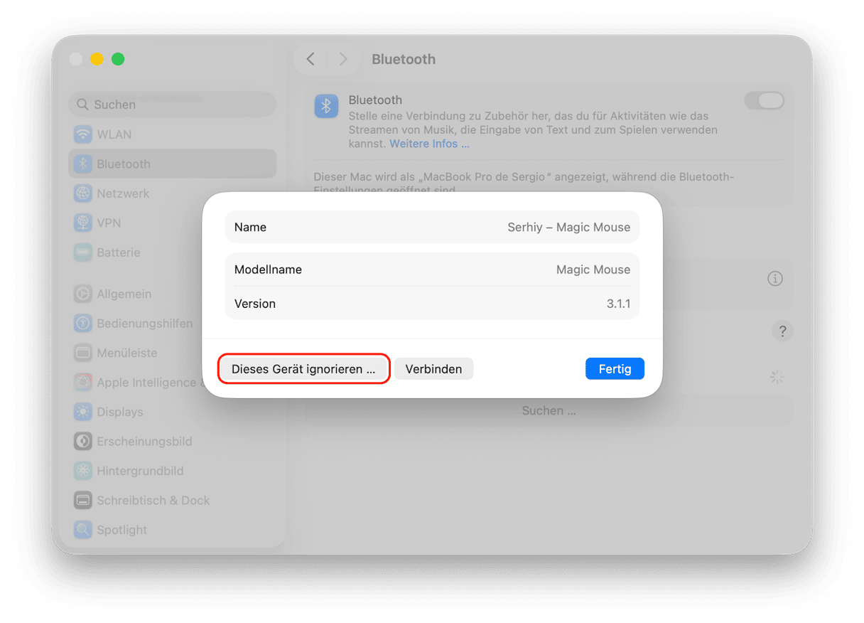 - Wählen Sie „Dieses Gerät ignorieren“.