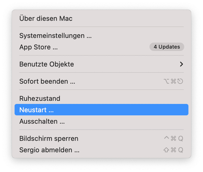 - Klicken Sie auf das Apple-Symbol oben links und wählen Sie „Herunterfahren“