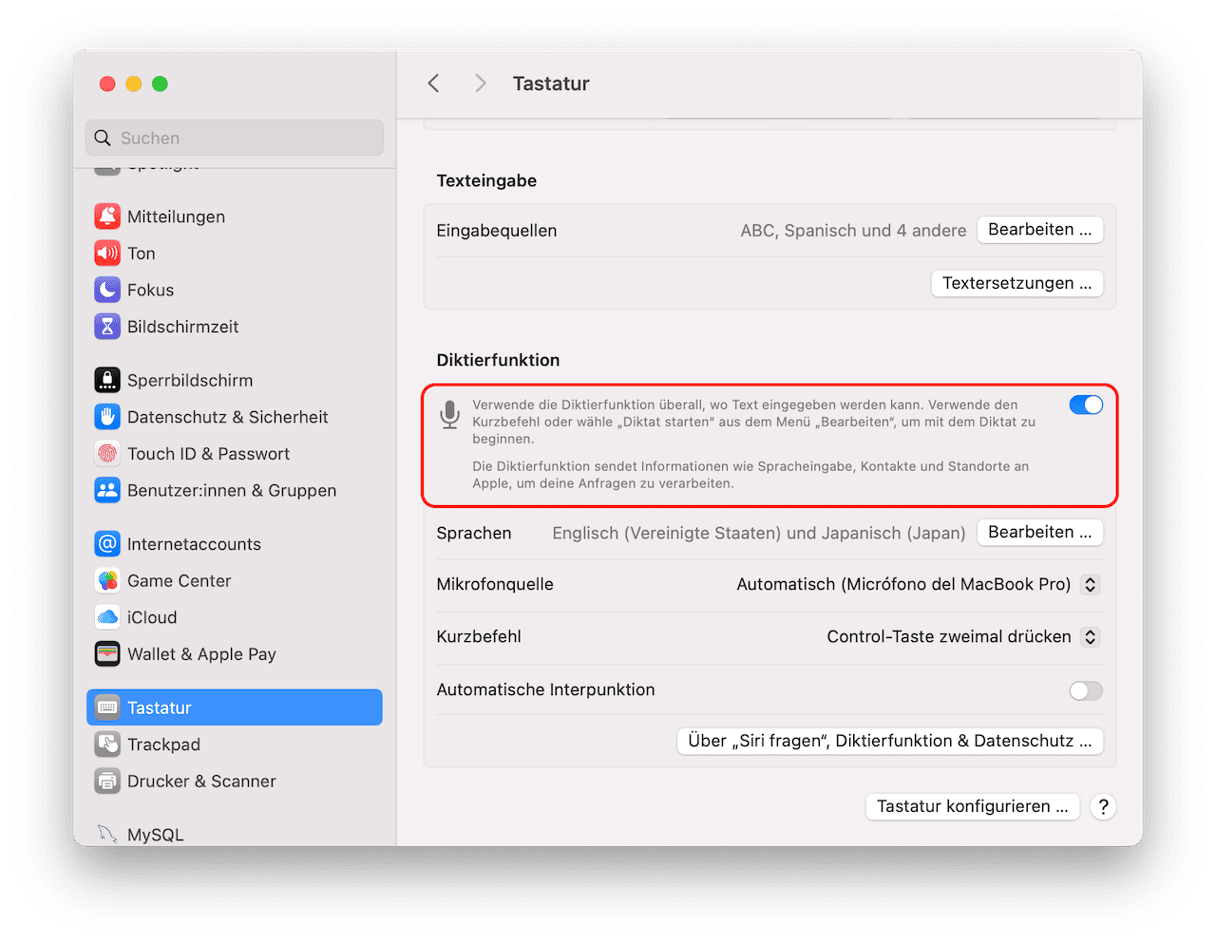 - Öffnen Sie die Systemeinstellungen > Tastatur.