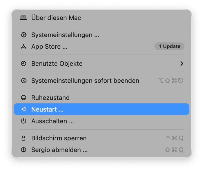 Ja, der älteste Trick funktioniert immer noch. Und wenn es um die Freigabe von mehreren Gigabytes geht, gibt es keinen Grund, nicht einen schnellen Neustart durchzuführen. Öffnen Sie das Apple-Menü und klicken Sie auf „Neustart“.