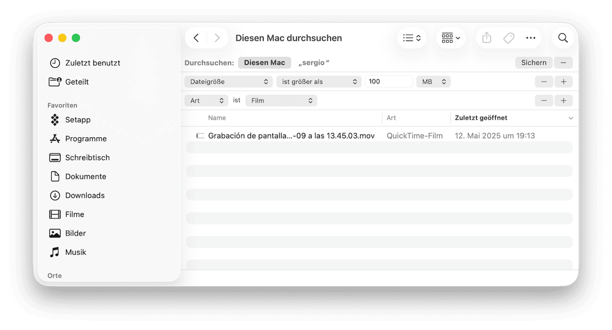Ich habe die integrierten Suchfilter des Finders verwendet, um große Mediendateien aufzuspüren. So geht's: