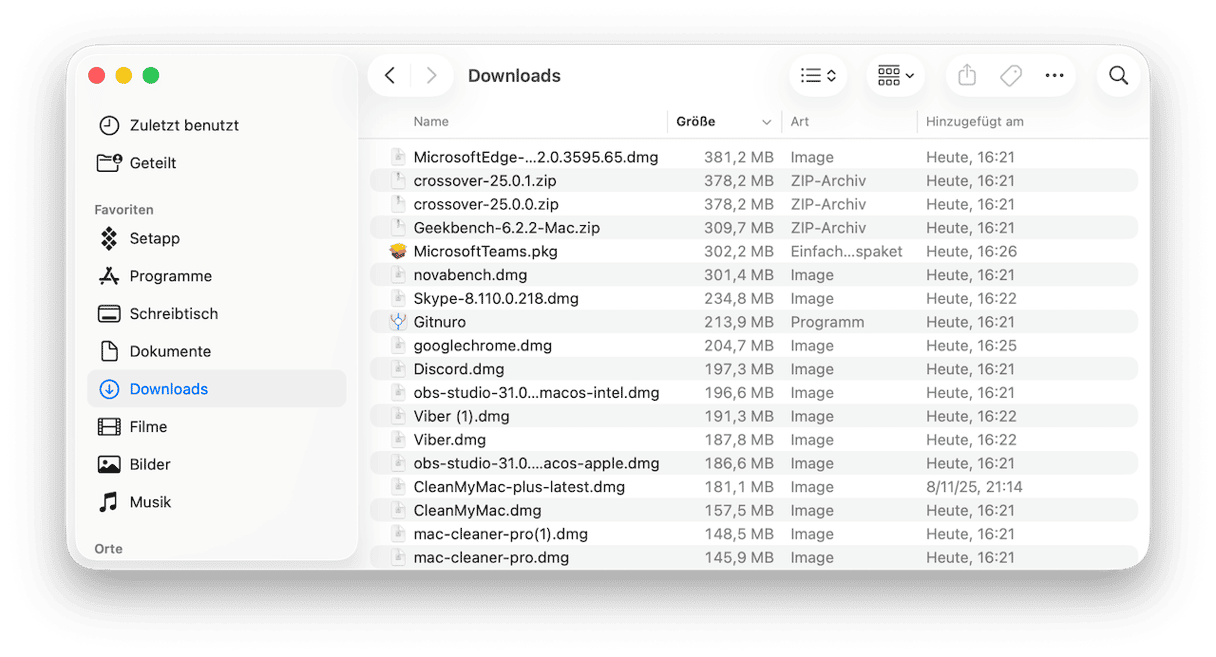 Der Ordner „Downloads“ ist ein Ort, den ich seit Monaten nicht mehr angerührt hatte und der mit alten DMG-Installationsprogrammen, PDFs und unbrauchbaren ZIP-Dateien vollgestopft war. Über 8 GB lagen einfach nur herum.