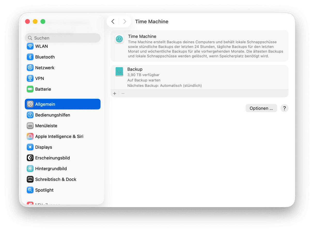 - Öffnen Sie die Systemeinstellungen > Allgemein > Time Machine.