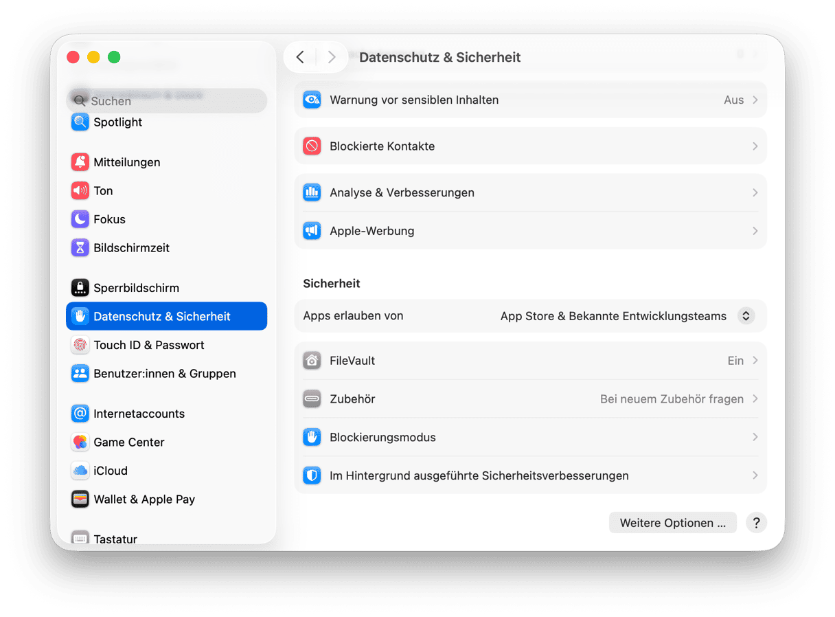 - Öffnen Sie die Systemeinstellungen > Datenschutz & Sicherheit.