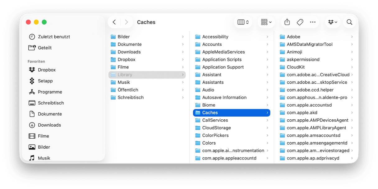 - Klicken Sie im Finder auf das Menü „Gehe zu“ > „Library“ > „Caches“ (Drücken Sie die Wahltaste, um die „Library“ anzuzeigen).