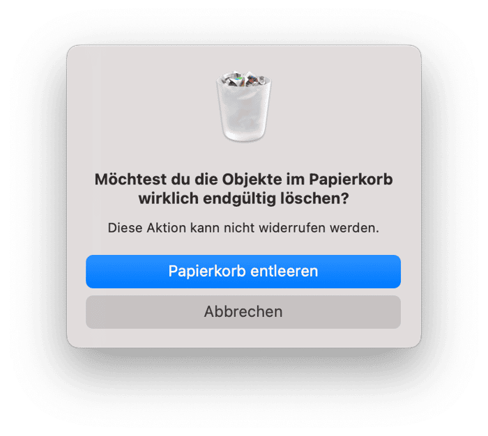 - Wählen Sie „Papierkorb entleeren“.