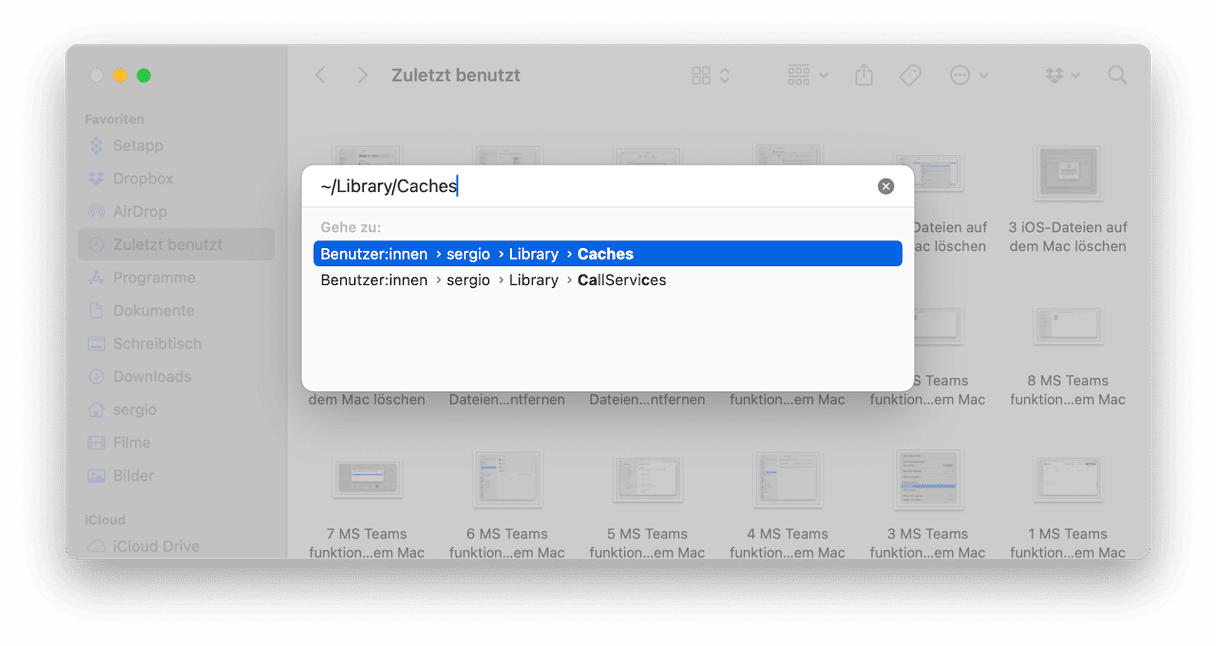 - Geben Sie ein: ~/Library/Caches