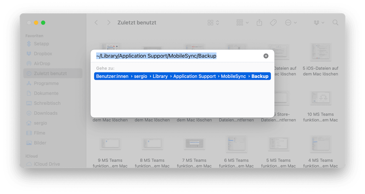 - Geben Sie dann ein: ~/Library/Application Support/MobileSync/Backup/