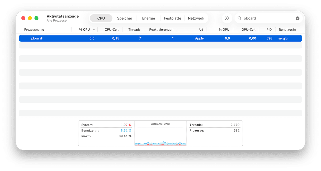 Wenn Kopieren und Einfügen auf dem Mac nicht funktionieren, kann Ihnen die Aktivitätsanzeige helfen: