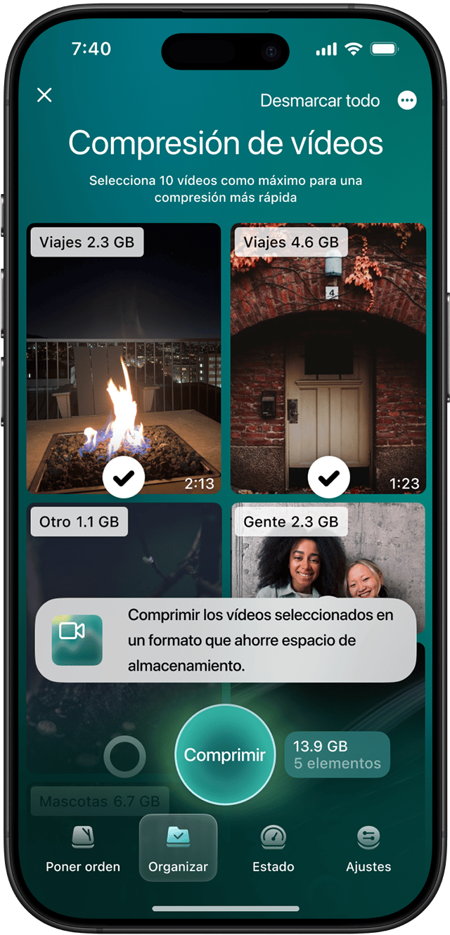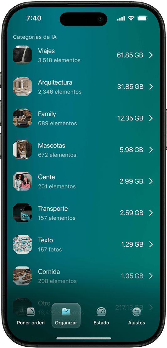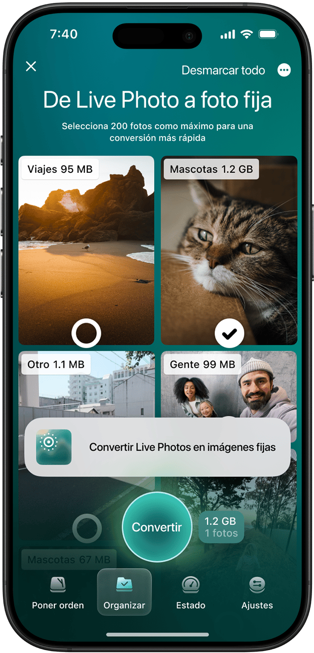 Descubrirás exactamente cuánto espacio ocupa tu app Fotos, tanto en local como en iCloud. Y qué fotos se llevan la palma (las de animales tienen muchos números).