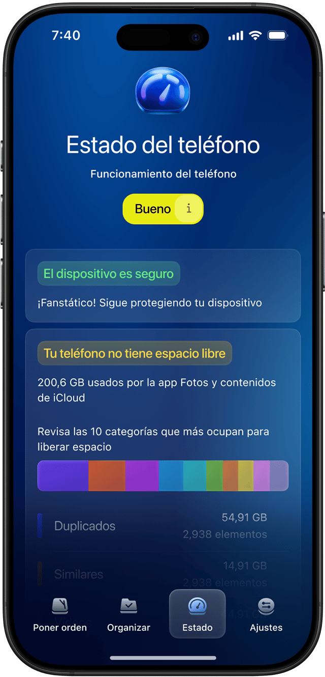 Asegúrate de que tu iPhone está en plena forma con las opciones de estado del teléfono, y analítica del almacenamiento y de la seguridad del dispositivo.