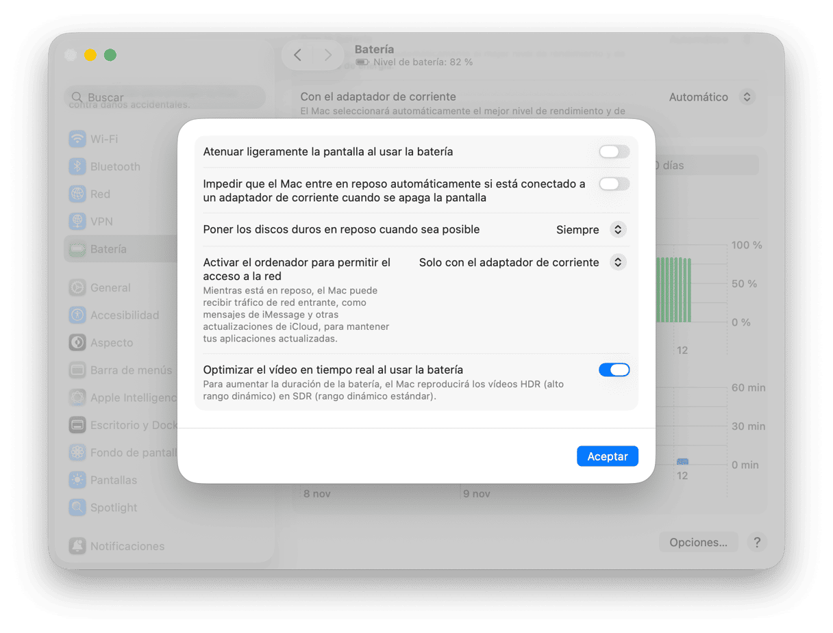 - Ve al menú Apple > Ajustes del Sistema y selecciona Batería.