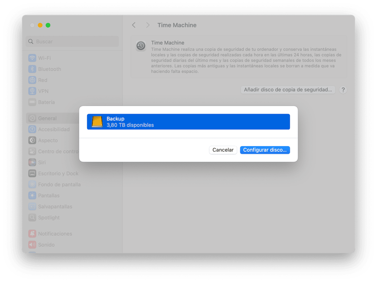 - Ve a Ajustes del Sistema > General > Time Machine.