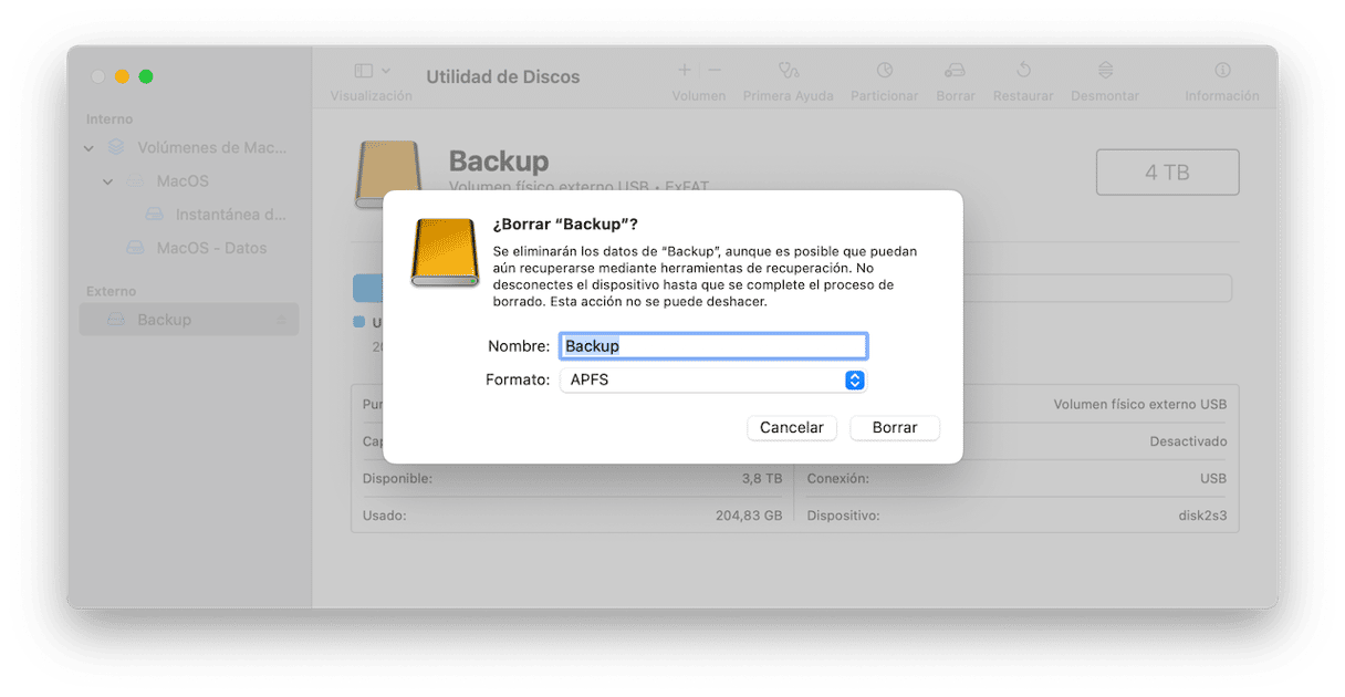 Si Time Machine no reconoce tu disco externo, es posible que primero tengas que formatearlo como APFS. A continuación te mostramos cómo hacerlo.