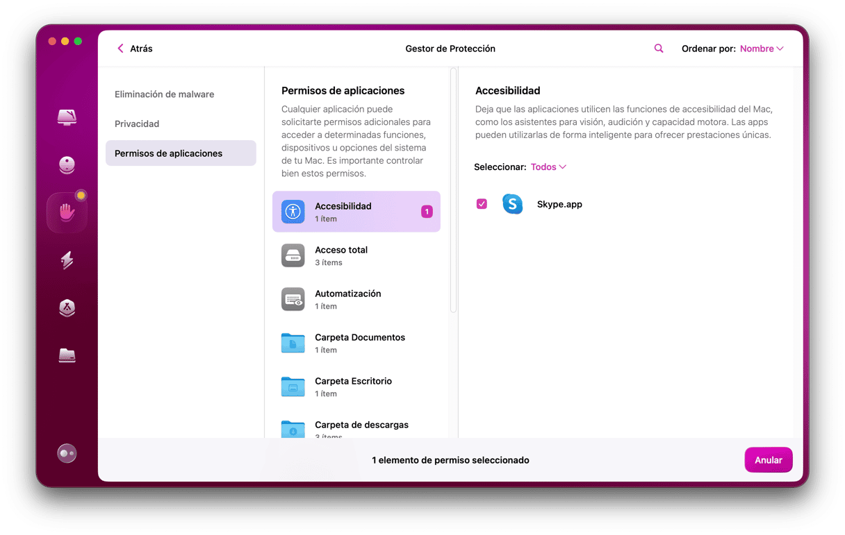 Por suerte, puedes controlar todo esto con la ayuda de CleanMyMac. El módulo Protección de CleanMyMac te permite eliminar el historial de la navegación, la lista de ítems recientes de tu Mac, eliminar las redes Wi-Fi guardadas y revocar los permisos que has dado a las apps, como el acceso a tu webcam o el micrófono.