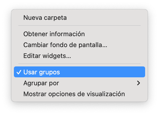Los grupos ayudan a mantener el escritorio organizado al agrupar los archivos del mismo tipo, pero a veces pueden hacer que sea difícil encontrar y gestionar archivos específicos. Puedes expandir una pila simplemente haciendo clic en ella. Para desactivar los Grupos por completo, simplemente presiona y mantén la tecla Control y haz clic en tu escritorio y desmarca la opción Usar grupos.