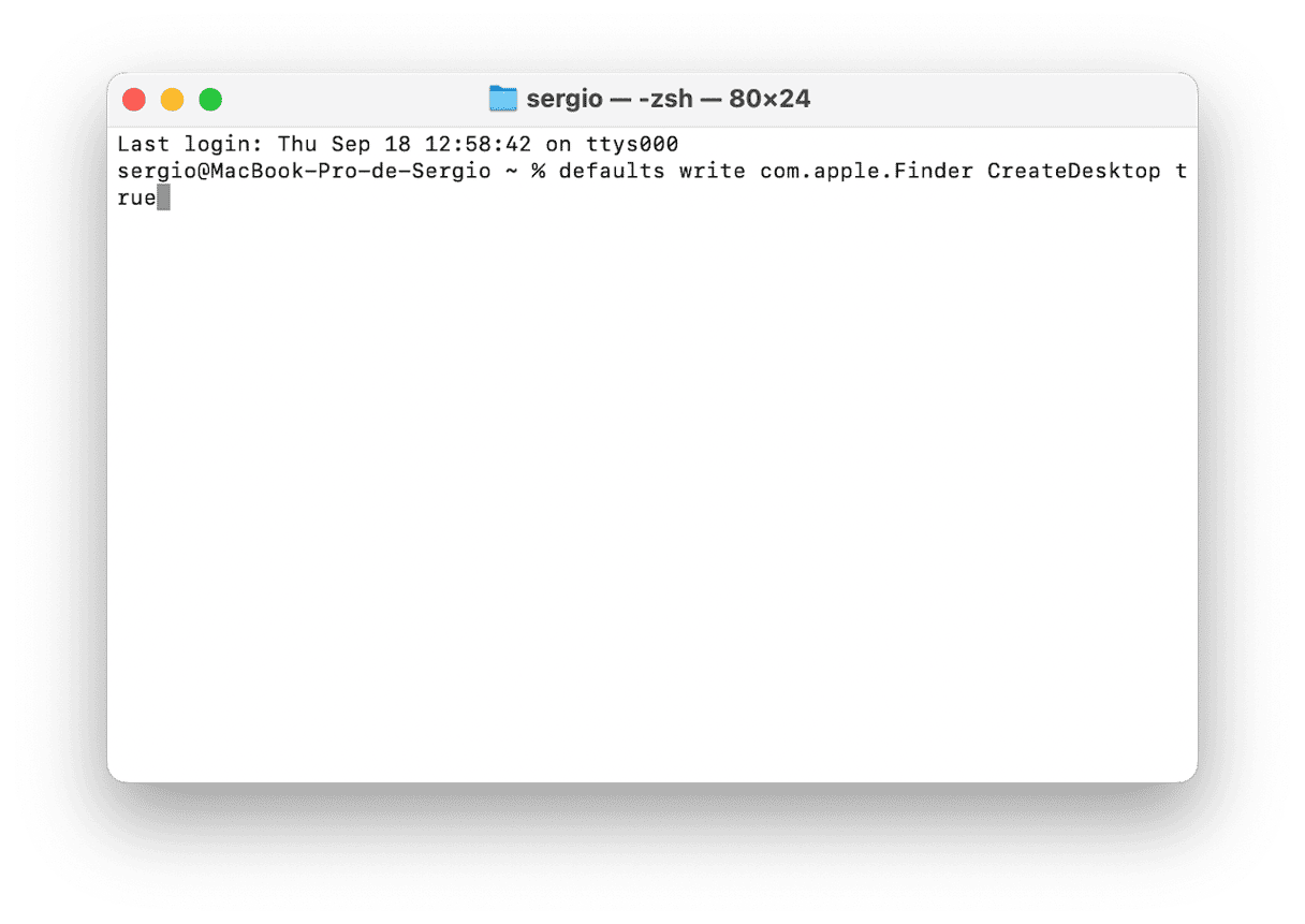 defaults write com.apple.Finder CreateDesktop true - Luego, escribe