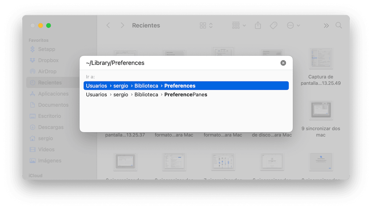 ~/Library/Preferencesy presiona Intro. - Encuentra los dos archivos nombrados a continuación, arrástralos a la carpeta Documentos y reinicia tu Mac: