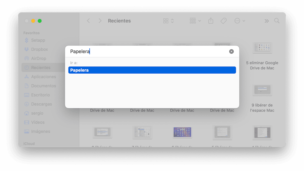 - Abre una nueva ventana del Finder, haga clic en Ir > Ir a la carpeta, escribe Papelera y presiona Intro.