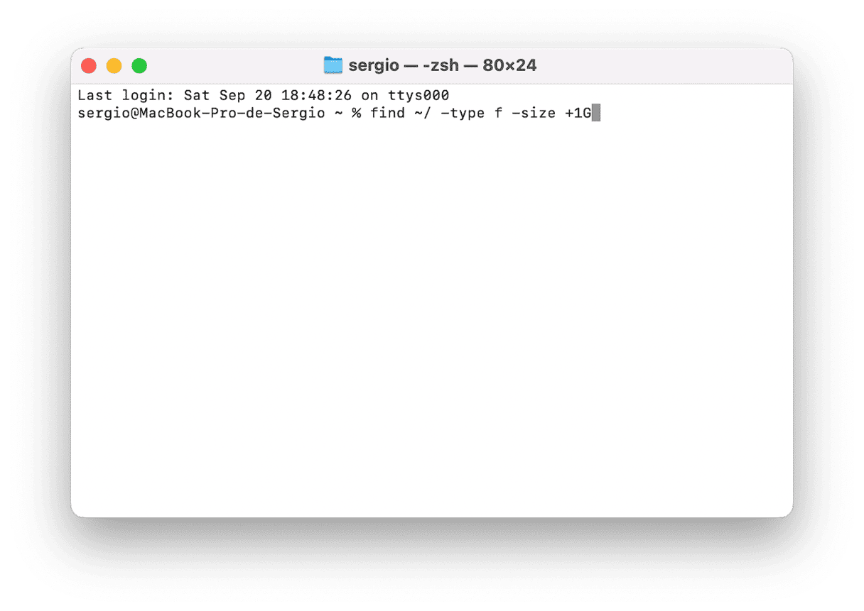 Otra forma de localizar archivos grandes en tu Mac es usar Terminal. Aunque para algunos usuarios sea complicado usar los comandos, si los usas correctamente, puedes encontrar cualquier cosa en tu Mac. Haz esto para poder encontrar los archivos más grandes en tu sistema: