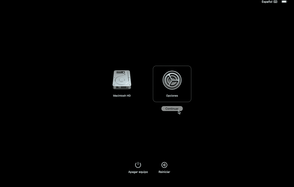 - Presiona y suelta el botón de encendido y luego presiona y mantén la combinación Comando+R.