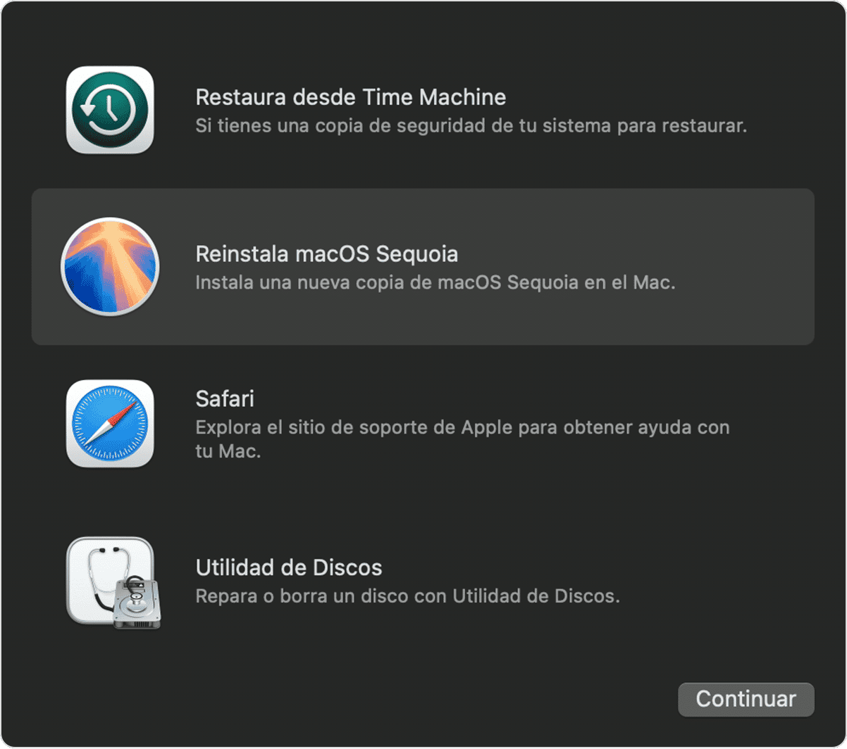 Cuando estés en modo de recuperación, haz clic en Reinstalar macOS y sigue las instrucciones en pantalla.