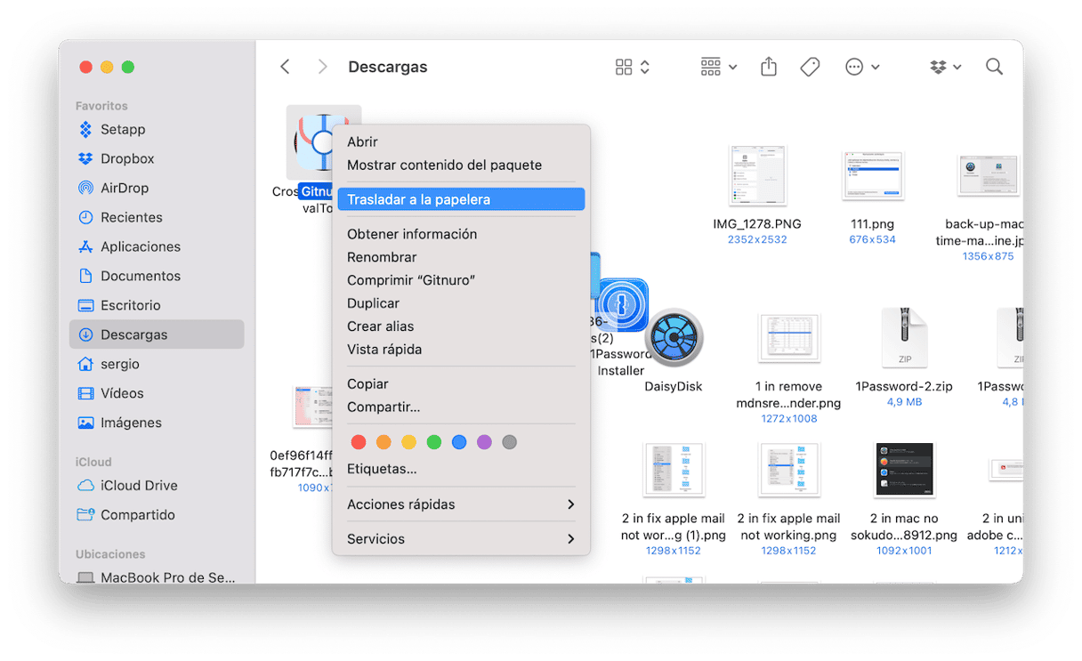 - Haz clic derecho en los archivos de los que quieras eliminar y haz clic en Trasladar a la papelera.
