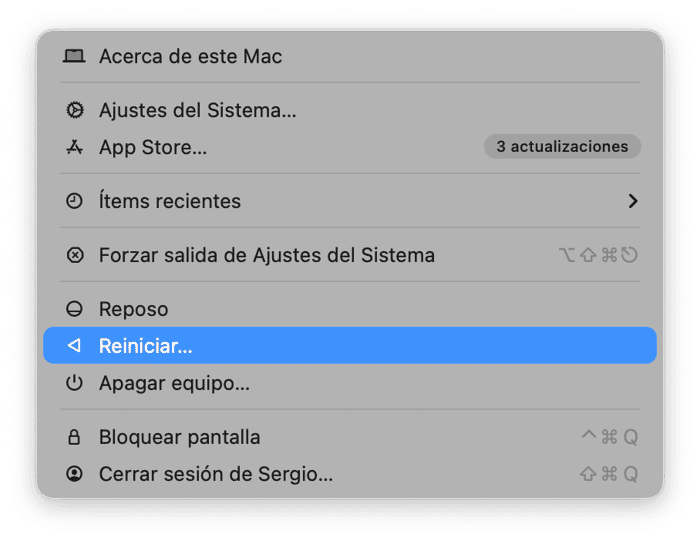 Sí, el truco más antiguo sigue funcionando. Y como cualquier giga cuenta, un reinicio solo puede ayudar. Ve al menú principal de Apple y haz clic en Reiniciar.