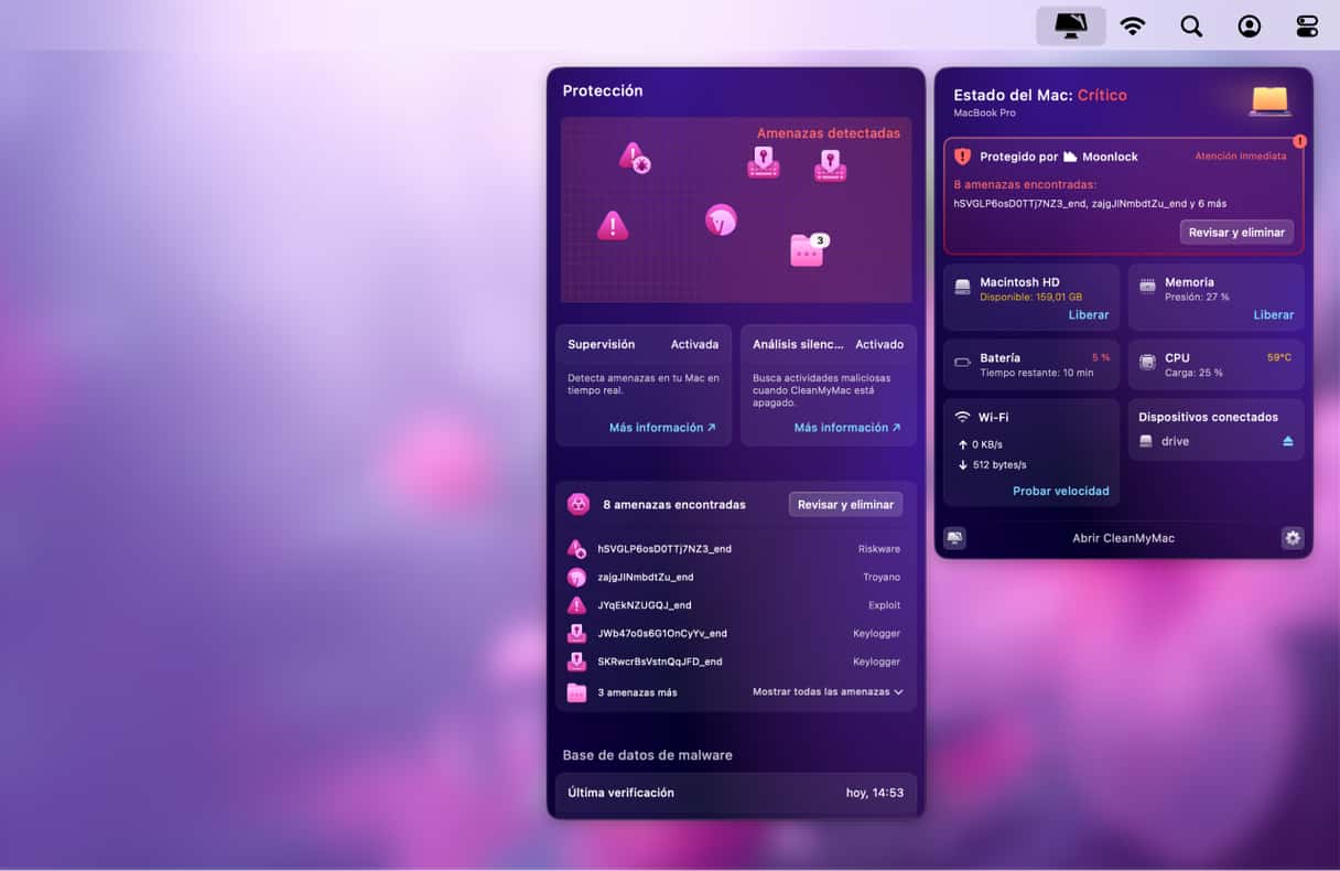 Para estar seguro, usa un software anti-malware que ofrece protección para tu Mac en tiempo real. Un ejemplo es CleanMyMac (consigue aquí tu prueba gratuita). Tiene una función de escaneo en segundo plano en tiempo real que monitorea específicamente las amenazas de macOS.