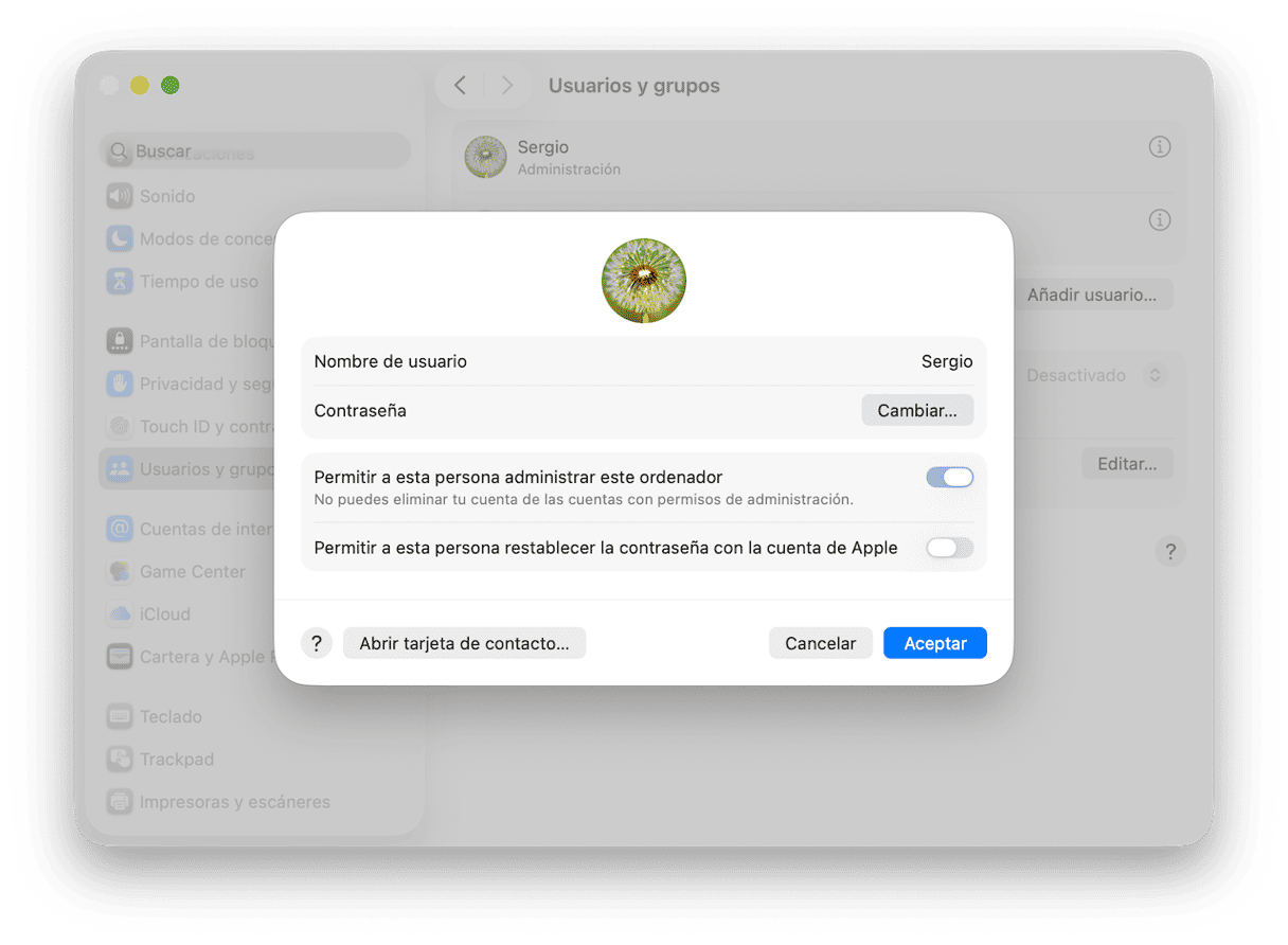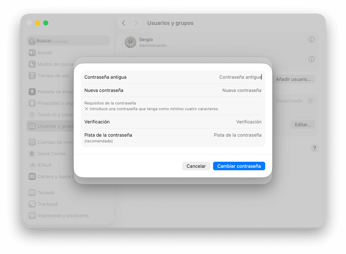 - Abre Ajustes del Sistema > Usuarios y grupos.