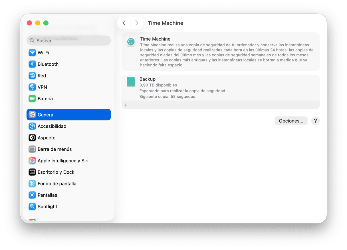 - Abre los Ajustes del Sistema y ve a General > Time Machine.
