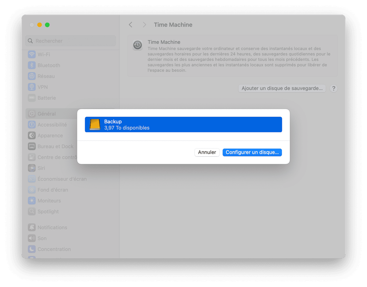 - Rendez-vous dans Réglages Système > Général > Time Machine.