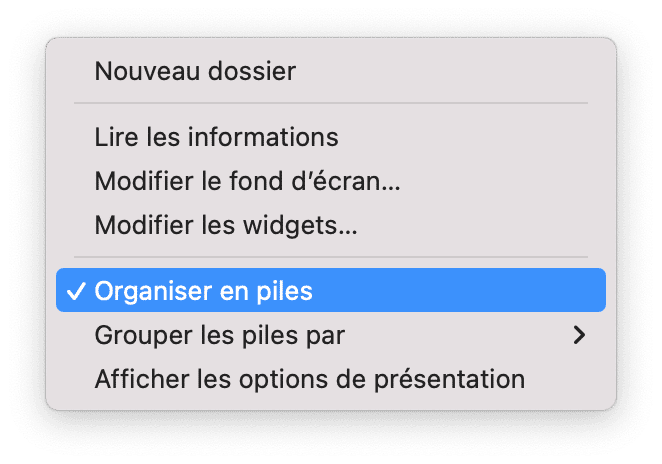 Saviez-vous qu'un bureau encombré pouvait contribuer à ralentir votre Mac ? Chaque élément étant traité comme une petite vignette d'aperçu, un bureau qui regorge de fichiers demande une certaine quantité de ressources processeur. Si vous avez besoin d'accéder rapidement à tous ces éléments, essayez plutôt d'utiliser les piles :