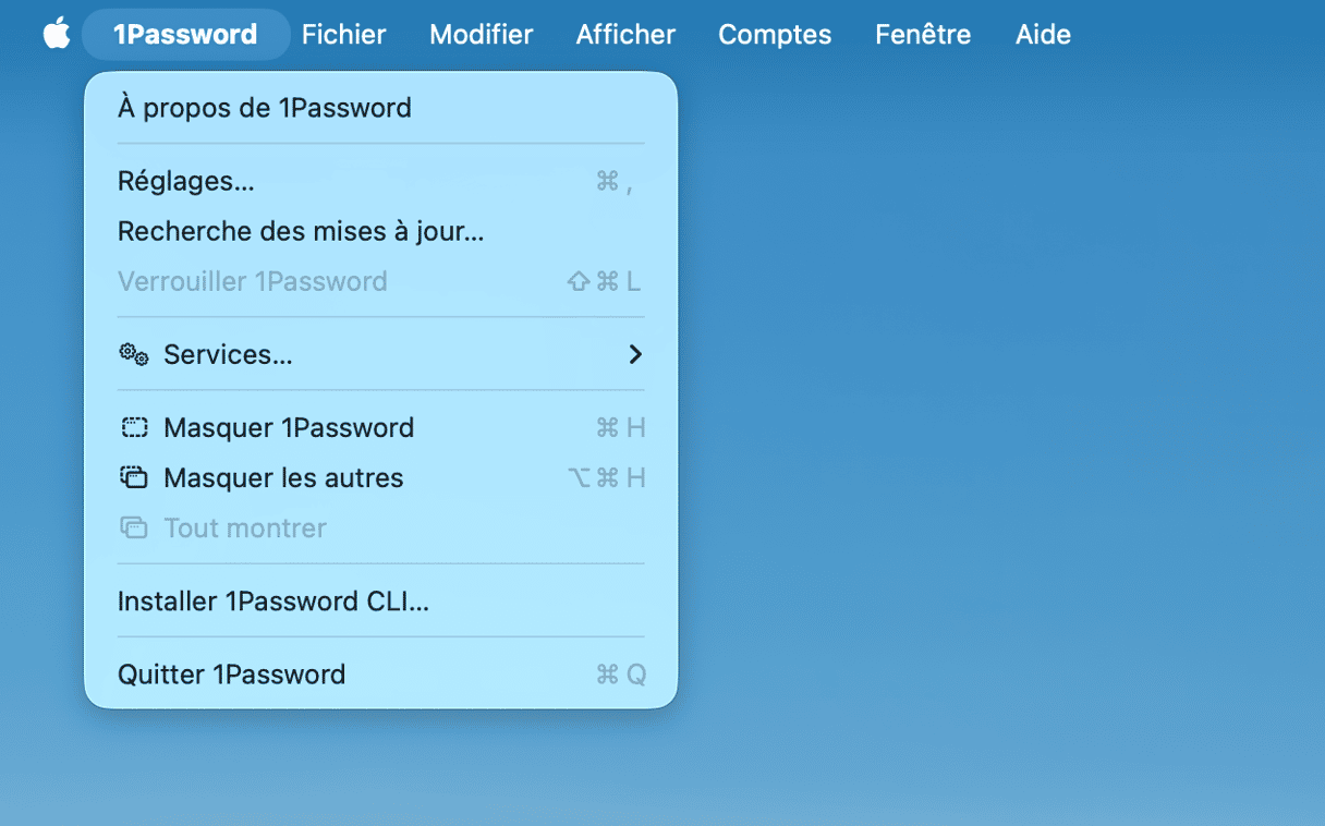 - Ouvrez l'application, cliquez sur son nom dans la barre des menus, puis cliquez sur Rechercher les mises à jour.
