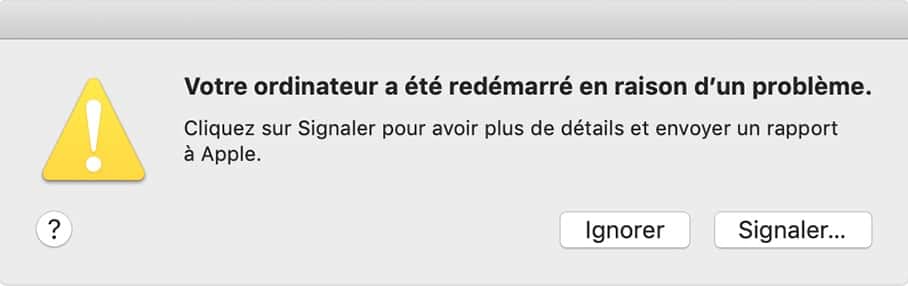 Après le redémarrage, votre Mac affichera une notification vous expliquant ce qui a occasionné le plantage. Vous pouvez cliquer sur le bouton Rapport... pour obtenir plus d'informations.