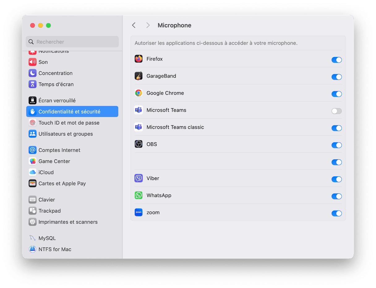Si vous voulez autoriser une application à utiliser votre micro, cliquez sur le bouton.