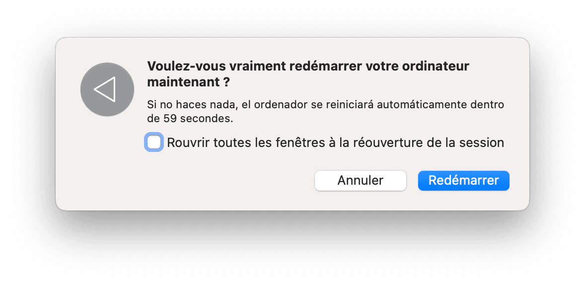Mais sachez que redémarrer votre Mac peut résoudre de nombreux petits problèmes, dont les dysfonctionnements du micro. Cliquez sur le menu Apple puis sur Redémarrer. Bon à savoir : vous pouvez cocher la case Rouvrir toutes les fenêtres à la réouverture de la session pour gagner un peu de temps.