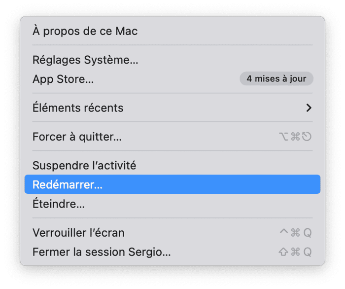 Un redémarrage peut souvent résoudre de nombreux problème, en supprimant notamment les fichiers temporaires qui vous empêchent de vous connecter aux serveurs d'Apple. Il est également recommandé de redémarrer votre Mac une fois de temps en temps.
