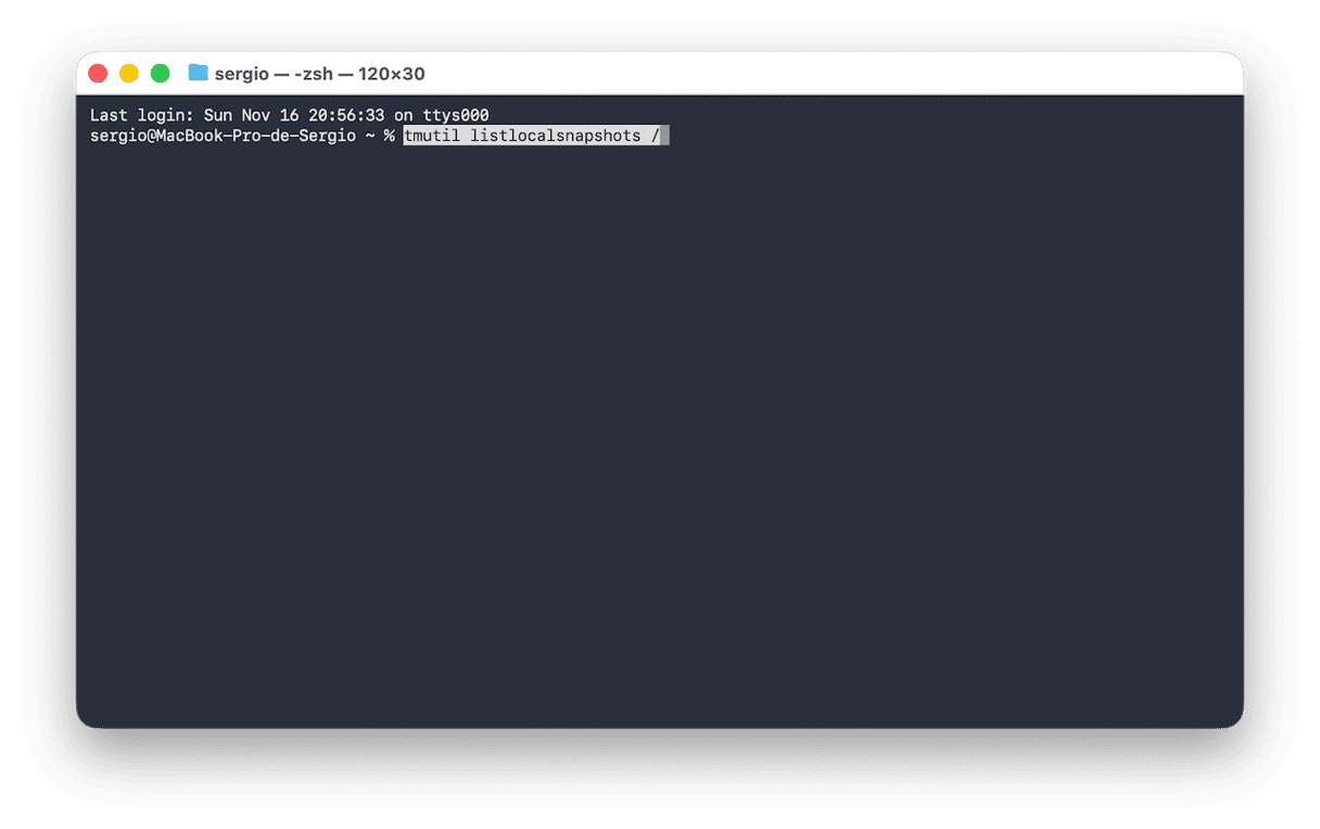 tmutil listlocalsnapshots / - Supprimez chaque instantané en utilisant la commande suivante :