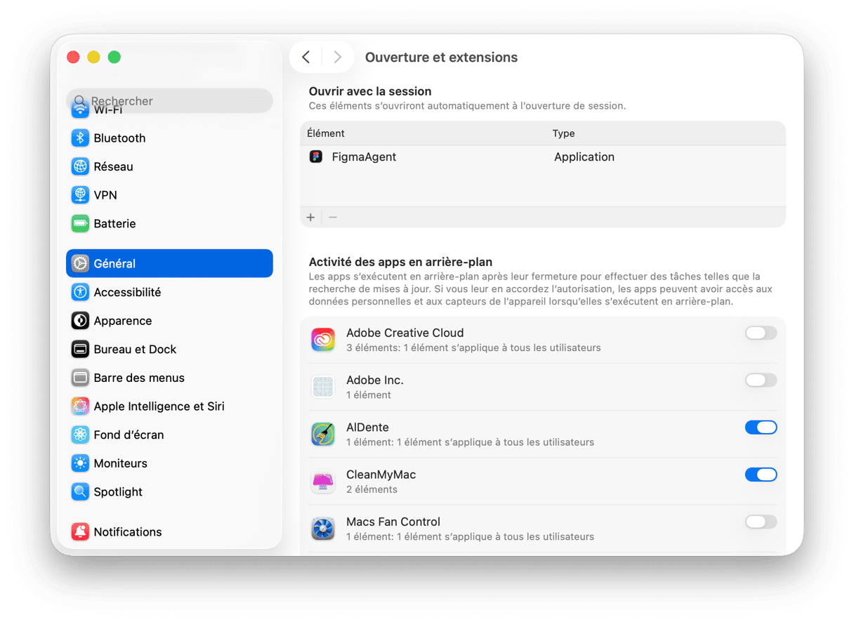 La liste des applications qui se trouvent dans vos éléments d'ouverture ou qui sont autorisées en arrière-plan peut être étonnante. Vous vous demanderez certainement lesquelles supprimer. La réponse est simple : supprimez tout ce qui ne contribue pas à améliorer votre expérience d'utilisation. Mais n'oubliez pas que les applications qui assurent la sécurité de votre Mac, comme les antivirus reconnus, doivent se lancer dès le démarrage de votre ordinateur.